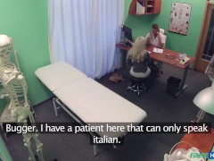 Busty CFNM amateur MILF pegs dude ass in the hospital room