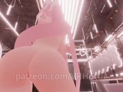 Thicc Booty Pink Hentai Girl Busts Out Dildo Nora Lovense Strips Down in Restroom POV Lap Dance