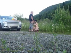 Outdoor bondage rough sex, orgasms, rimjob and cumshot