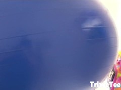 Trixie Teen stretching exercise and remove her bra showing her perfect breast. She exercise with big