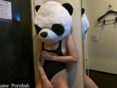 ネットカフェで立ったままオナニーするパンダ