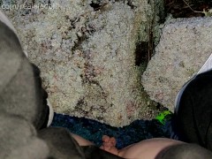 Peeing outside on the frozen grass