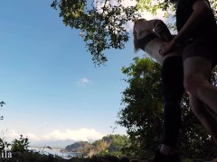 VACATION JUNGLE SEX - Horny couple fuck on HIKING TRAIL and almost GET CAUGHT