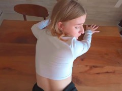 cute schoolgirl in a jacket gets fucked hard and gives a good blowjob to get a lot of cum on