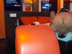 My best friend went on a trip and her boyfriend needed someone to jerk his cock and suck his ass.
