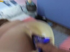 Lily Slutty masturbates in stockings with a vibrating anal plug from Honey Play Box