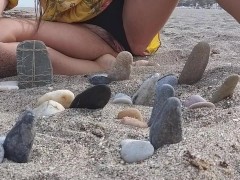 Public GangBang Play with 9 Stone Hard DICKS on the Beach # Pissing ALL 9 DICKS in PUBLIC