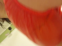 Filling My New Red Plastic Panties With Piss