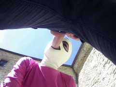 Laura on Heels amateur 2021 on pink outfit in outdoor blowjob and masked oral creampie