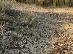 She lies in the fresh air with her legs up, showing her pussy 🔥