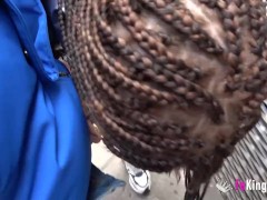 She can't wait to get to the place, and STARTS SUCKING COCK in the street!