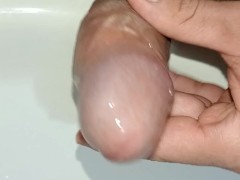 pene grande y venoso desesperado eyaculando mucha leche, primer plano