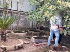 Public garden Sex Girlfriend with boyfriend blowjob and fucking without condom