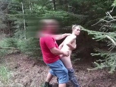 Stranger fucked totally naked lady in public wood having outdoor sex
