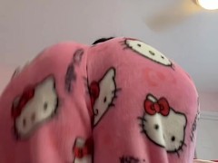 Pretty brunette Arab bouncing big fat ass in hello kitty pajamas