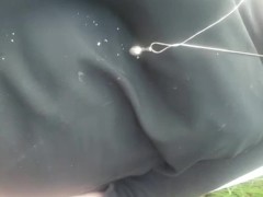 Smoking cigarette in black pantyhose outside make hole for my clit and turn off cigaret by my Pee
