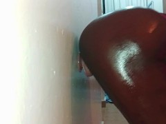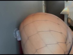 MILF riding suction cup dildo on the wall real amateur slut wife exposed